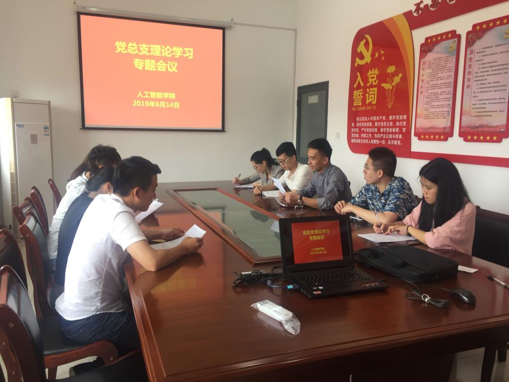 为认真学习习近平总书记在“不忘初心、牢记使命”主题教育工作会议上的重要讲话精神,教育引导广大师生牢记共产党人的初心与使命,更好地履职与奉献,人工智能学院党总支于6月14-17日召开“不忘初心 牢记使命”主题教育系列学习大会,党总支书记、党支部书记以及广大师生参加学习会。