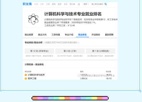 在所有工学类中,计算机科学与技术专业就业排名第一,在计算机类9个专业中,计算机科学与技术专业就业排名第一。自阳光学院办学以来,2000多名计算机科学与技术专业的毕业生大多进入IT企业、国家机关以及各个大、中型企、事业单位的信息技术部门、教育部门等单位从事软件工程领域的技术开发、教学、科研及管理工作。