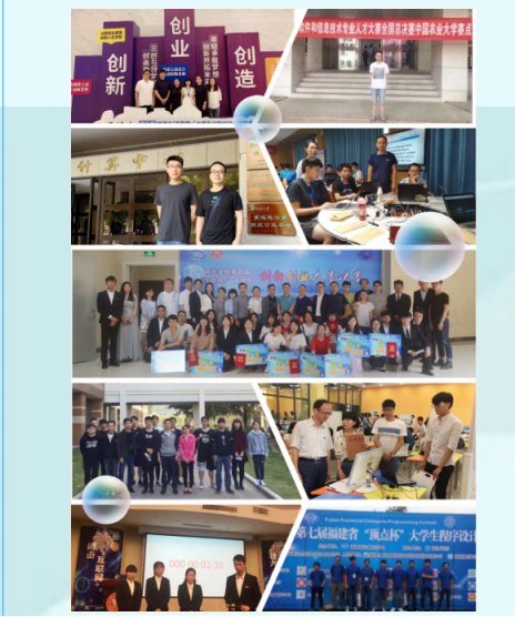 近年来,本专业学生参与国家级大创10项、省级大创项目28项,在“互联网+”、“挑战杯”、“软件设计大赛”、“数学建模大赛”等各类学生科技竞赛活动、各级大学生创新创业竞赛活动,获各类奖项100余项。2020年,在第十一届“挑战杯”福建省大学生创业计划竞赛上一举夺得四项金奖;毕业生的创业项目在第九届福建省大学生“创业之星”评选中获得创业之星标兵大奖。