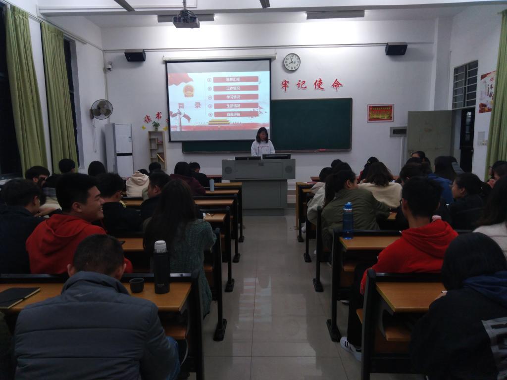 会议初始,严绍典老师就本次汇报的目的、意义以及汇报的流程做了详细介绍。通过入党积极分子对自己从大一到现在的整体情况的叙述以及表现,在座的各位老师对此提出意见和建议,通过这样一个过程,能够更加公平公正公开的选拔优秀的学生入党。随后入党积极分子依次上台汇报,汇报完之后,在座的老师可以提出自己对他们本次汇报表现的看法,也可以提出疑问,让他们回答。