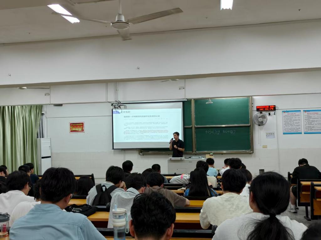 陈超念老师结合2025年最新行业招聘趋势,深入分析了当前计算机领域就业新态势:传统软件开发岗位竞争持续白热化,而AI应用开发、数据安全、边缘计算等新兴赛道人才需求激增,相关岗位缺口越来愈大。他援引学院近几年就业数据,重点解读了应届生在秋招中的竞争力优势,强调10-11月是企业集中补录、优质岗位释放的关键窗口期,鼓励学生把握最后冲刺机遇。