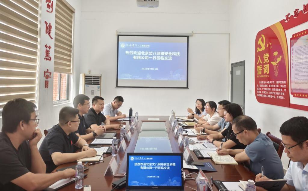 为深入推进校企合作,搭建沟通平台,9月18日上午,北京丈八网络安全科技有限公司丁传捷一行莅临人工智能学院进行交流考察。交流活动由人工智能学院党委书记柯燕华主持,人工智能学院院长、副院长、各系主任及骨干教师参加,双方围绕网络安全领域的人才培养、产教融合等议题展开了深入探讨。