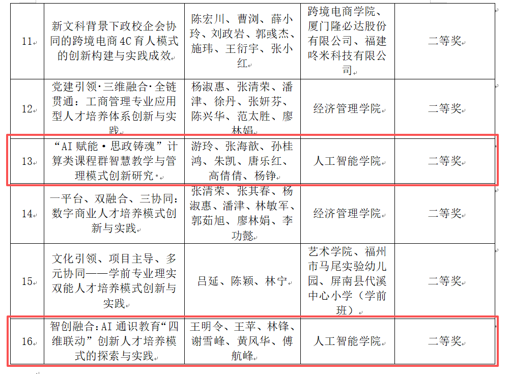近日,阳光学院2025年校级教育教学成果奖评选结果正式公布,人工智能学院教师凭借扎实的教学积累与实践探索,喜获4项荣誉。