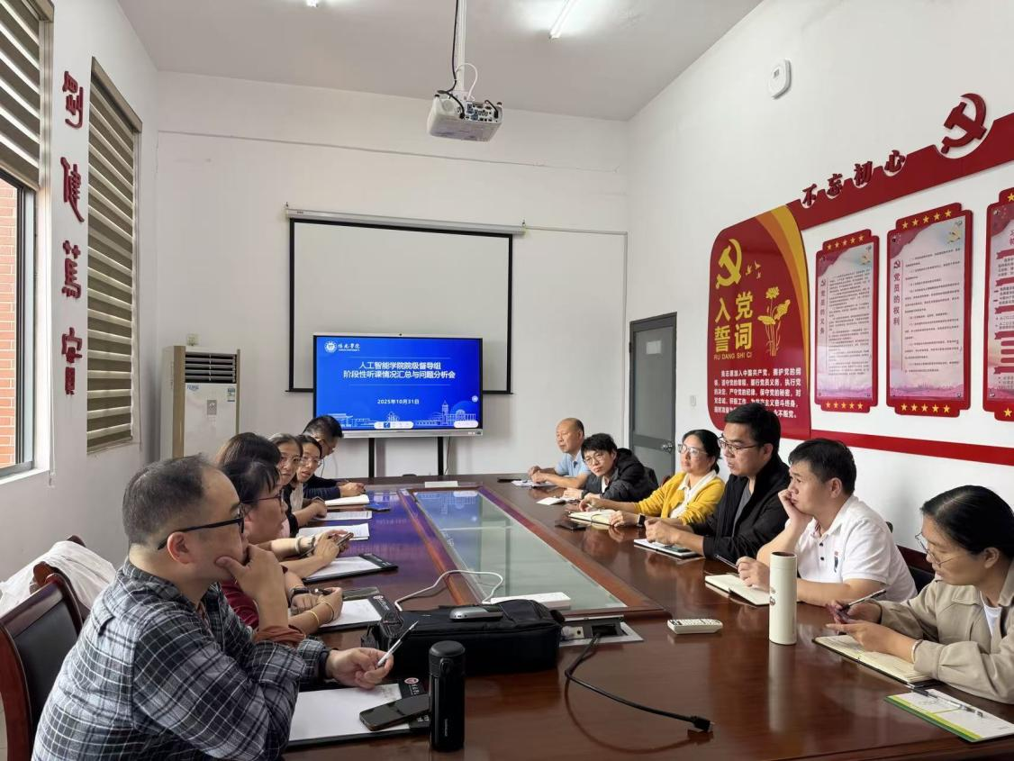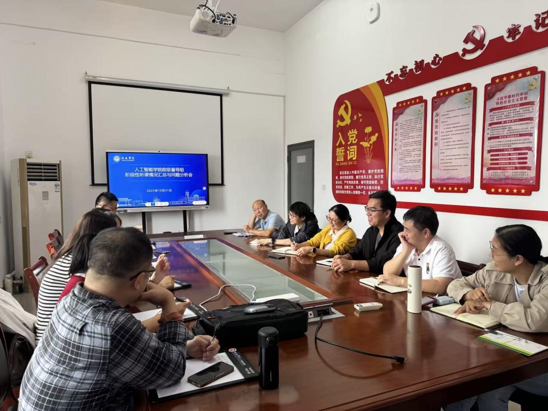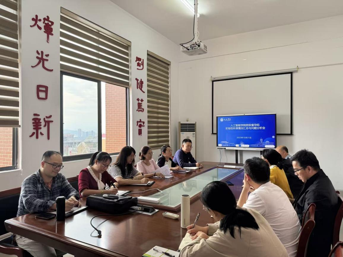 为持续加强教学过程管理,提升课堂教学质量,充分发挥教学督导在质量监控与改进中的关键作用,2025年10月31日下午2点,人工智能学院督导组在知行楼A405会议室召开阶段性听课情况汇报与问题分析会。教学副院长游玲主持会议,全体院督导组成员及教学秘书参加。
